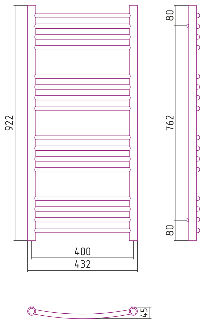 Тип:Богема выгнутая, Полотенцесушитель