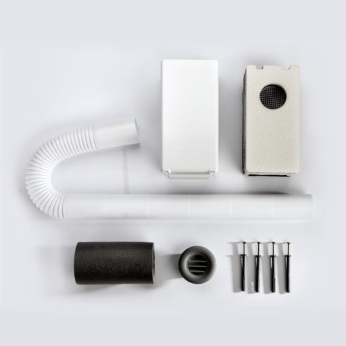 Через наружную решетку уличный воздух по пластиковой трубе попадает в шумопоглотитель стенового приточного клапана. За счет своей лабиринтной формы он производит грубую фильтрацию воздуха и обеспечивает отсутствие шума и пыли в помещении.